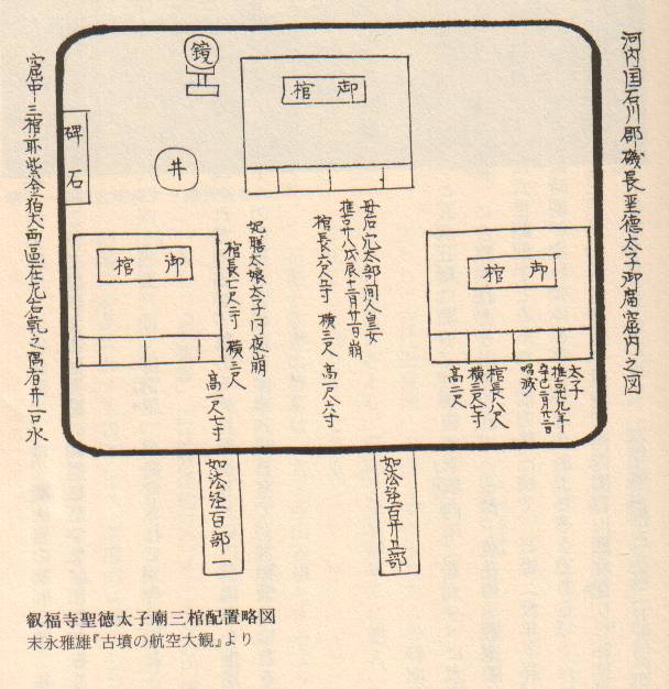 7.正歴5年(994)僧康伝大徳が、墳墓の石室内を拝観したところ、母后と太子と妃の三つの棺があり、太子の遺骸はまるで生きるが如くに残っていたこと。