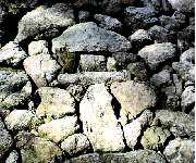 高鴨神社本殿右の 石垣に灯篭の石を発見 |