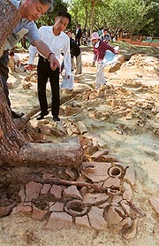 外濠の発掘現場 上の段に、沢山の形象