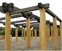 南門…築地塀がある庁屋への正門 中心的建物の「庁屋」、校倉造倉庫、門が出土、硯も出ておりこの辺が奈良時代の久世郡の中心地であったと推定される。 現在は遺跡公園になっている。 |