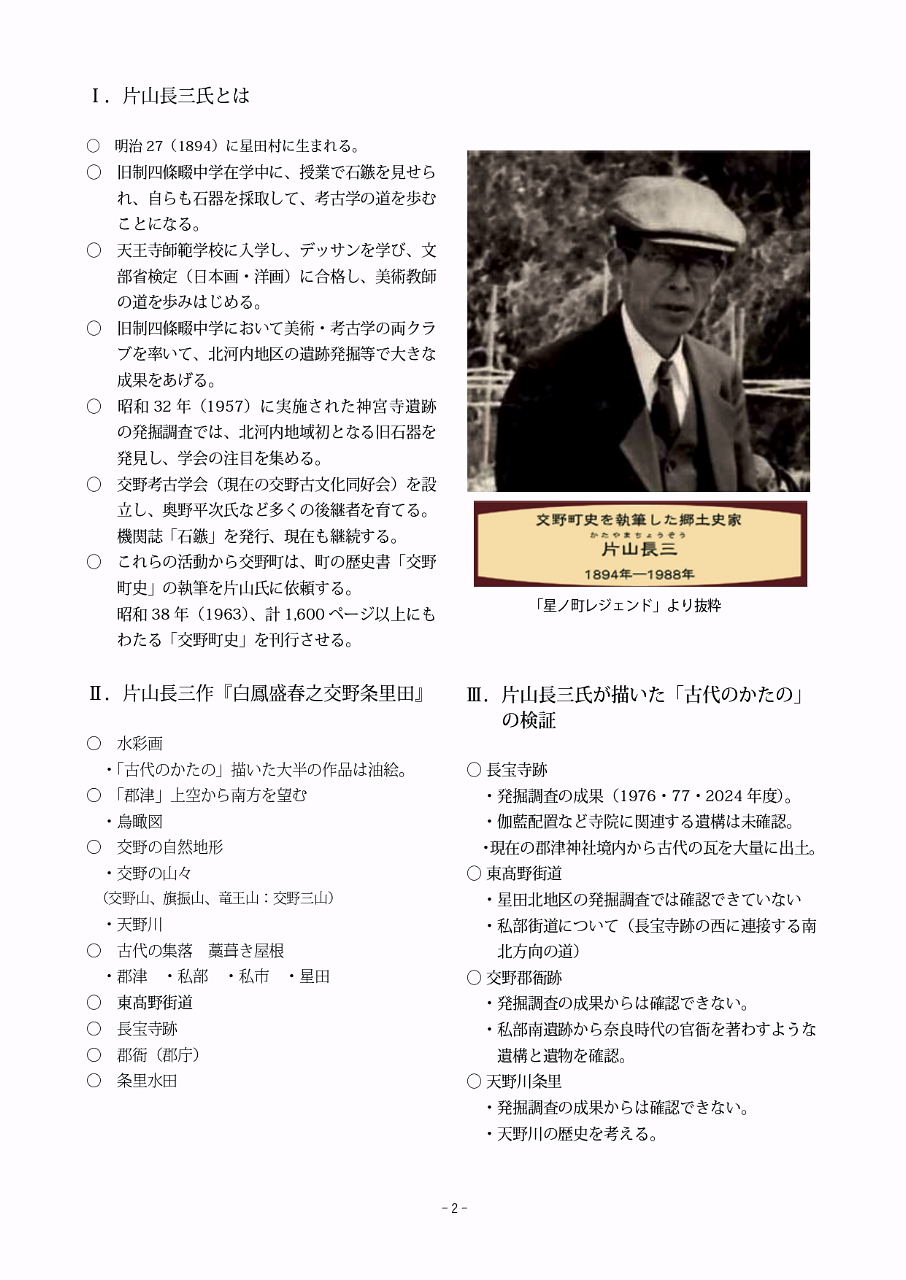 | 「古代のかたの」レジメ 講師 : 橋本 高明氏(交野市地域振興部文化観光課) 「古代のかたの」レジメ(PDF) |