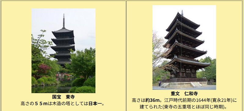 国宝が2塔、(東寺、醍醐寺) 重文が2塔。(仁和寺、法観寺)