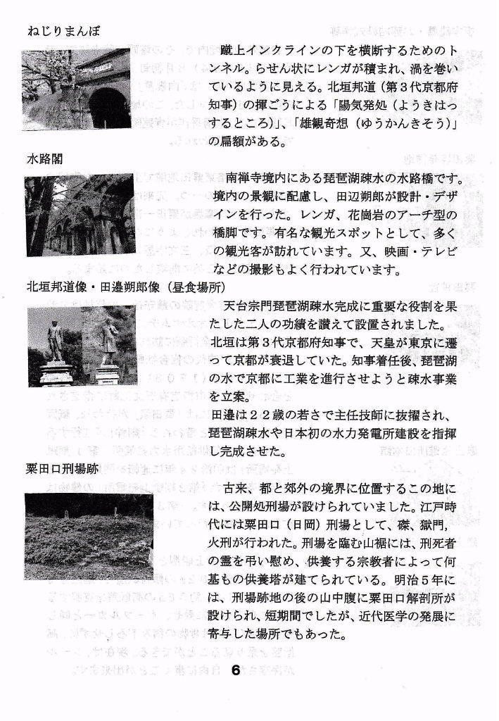 | 南禅寺境内にある琵琶湖疎水の水路橋です。境内の景観に配慮し、田辺朔郎が設計・デザインを行った。レンガ、花商岩のアーチ型の橋脚です。有名な観光スポットとして、多くの観光客が訪れています。又、映画・テレビなどの撮影もよく行われている。 |