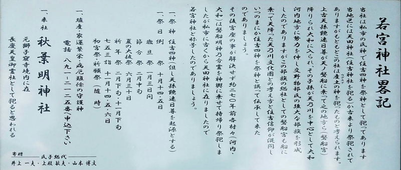 | 天田宮があったので、後から出来た宮、若い宮と名付けた。 |