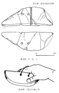 石器は矢じりやモリなどの狩猟具に使われたほか、石斧は穴掘りに、石皿は調理具として重宝され、弥生時代には石包丁や石鏃など、農具にも利用された。