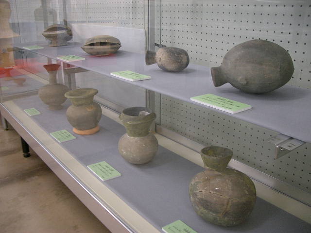 変電所建設時に出土した 昭和26年、枚方変電所の建設工事中、8基の横穴式古墳が発掘されました。この古墳は、1,000年以上も昔のもので、歴史的価値の高いものと注目されており、出土した土器や装身具を展示し、当時の集落の模型や、ビデオ・説明パネルで、交野の1,000年昔の人々の生活を偲んで頂けるようになっています。