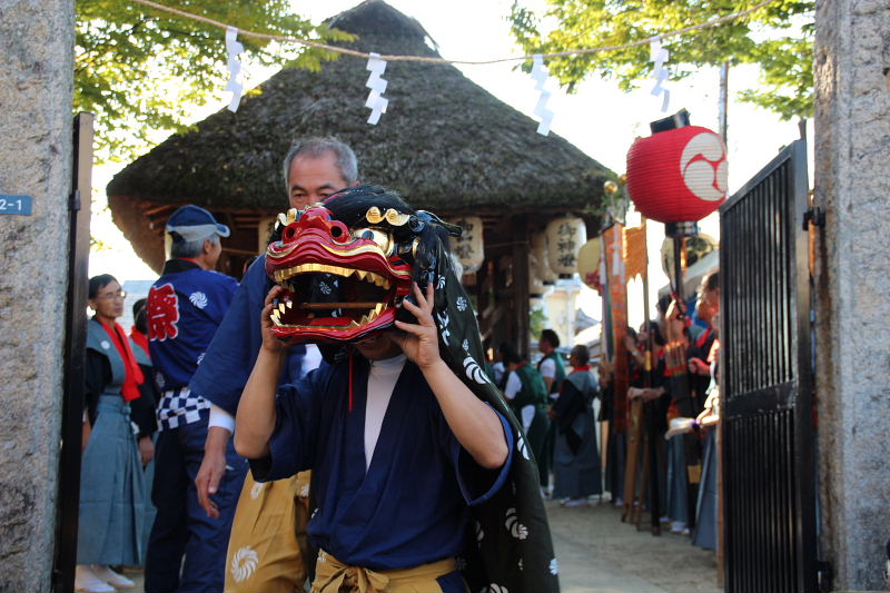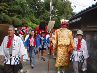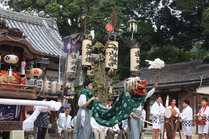 獅子舞=西村泰治郎宅で獅子頭が見つかったのがきっかけとなり、翌昭和53年より宵宮は若宮、本宮は天田神社で奉納されるようになった。![]()