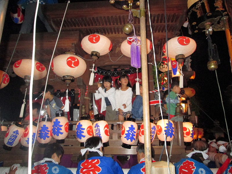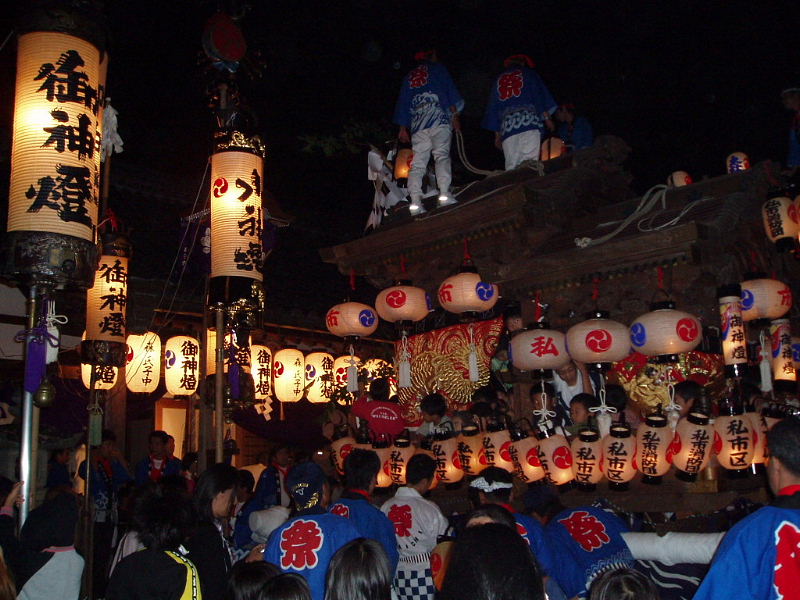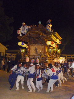 地車の運行(午後8時過ぎ) 星田神社境内で地車の曳きまわしが行われる。