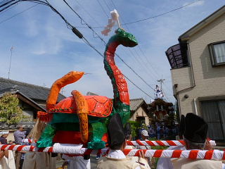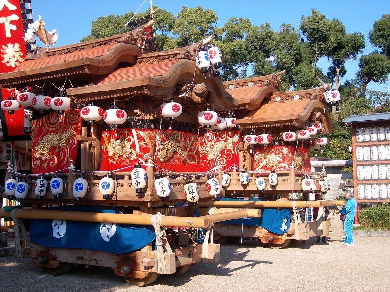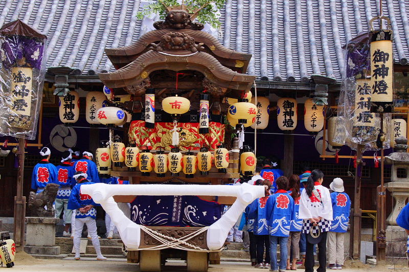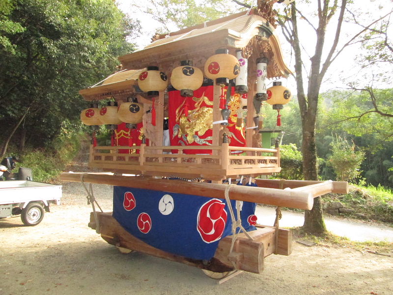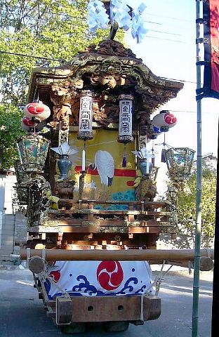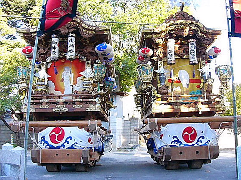 なお、昔は、地車が2台あったが、明治16年、龍王山にほらが吹いた(地下水が大量に湧き出た)ため、四辻付近にあった地車小屋が流され地車は1台となった。祭神・たくはたちじひめの栲機千々比売 大神(七夕姫)