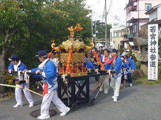 天保2年(1831)制作。大工は不詳。彫師は松尾半兵衛か。子供みこし=若宮神社に安置し、その後各地区を練る。昭和60年頃制作。以前は手作り花みこし。