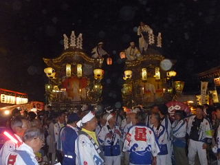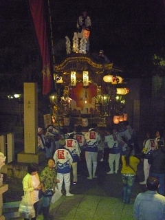 ・地車の宮入り(午後8時過ぎ)星田神社境内