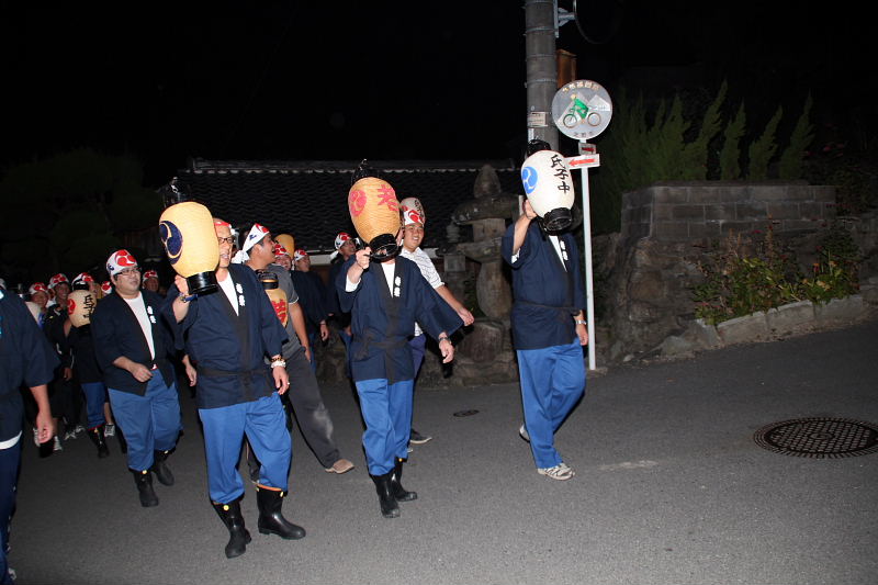 午後7時に星田会館を出発し、約70名が提灯片手に伊勢音頭を威勢よく歌いながら