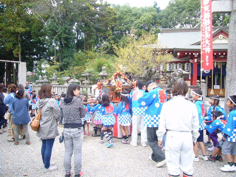 併せて、私市小学校の5年生は南中ソーラン節を6年生は私市太鼓を運動会に併せて練習、秋祭りの本宮で若宮神社と天田神社に奉納披露している。![]()