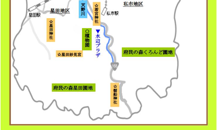 天田神社は私市、森の氏神社で住吉四神を祀る。古代この地方は土地が良く肥えて、作物が豊かな野であったので、甘野といわれ、川は甘野川、田は甘田であった。この甘田に田の神を祀って建てた甘田宮が当天田神社の起源と言われている。
