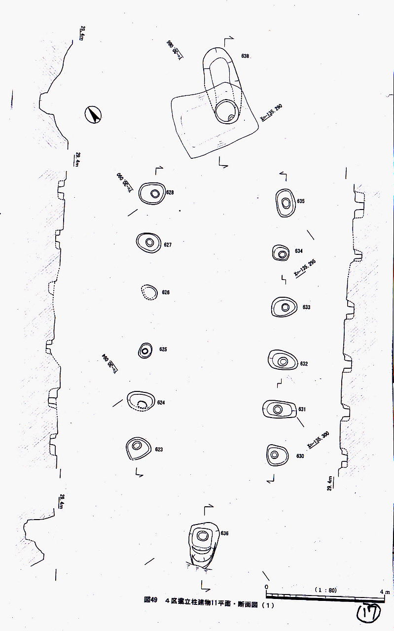 | ウッドサークルとは 円を描くように巨木柱を配置した縄文時代の祭祀施設らしい遺構。1980年に金沢市新保本町のチカモリ遺跡で判明した約3000~ 4000年前(縄文時代後期)のクリ材(直径50~ 85cm)による直径7mの遺構を始め、富山県小矢部市の桜町遺跡で2000年末に確認された約2700年前(同晩期)のクリ材(直径30~ 60cm)lo本を使った直径約6五の遺構など全国で十数例見つかっている。 滋賀県東近江市の正楽寺遺跡(94年)では内部に大型たき火跡があって建物説が否定され、真脇(まわき)遺跡の半分に割つたクリ材の使用(84年)が判明―しており、多様性もありそうだという。 (天野幸弘朝日新聞記者/:今井邦彦朝日新聞記者/2007年) |