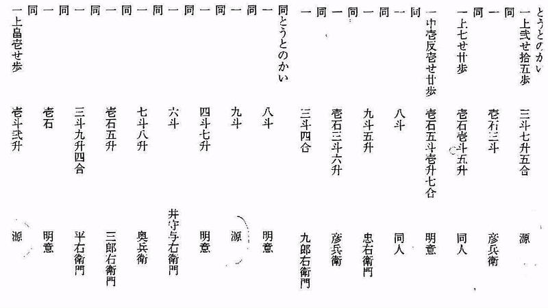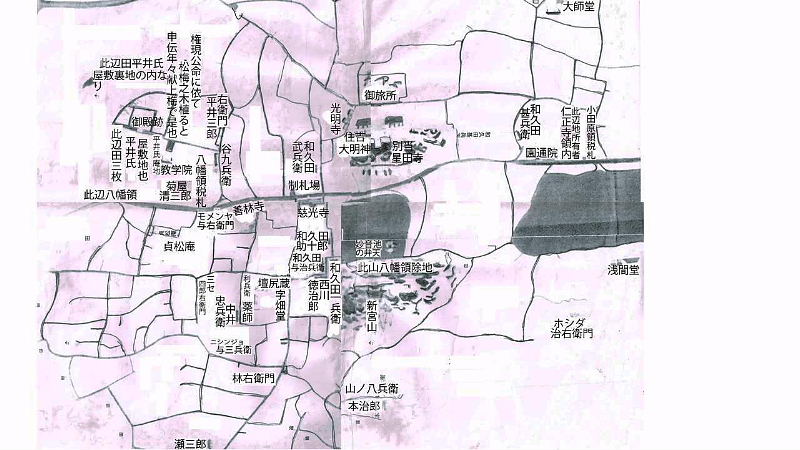 | 豪中農家の耕作地は、広域に及んでいて家族、使用人、無役農家など小作人によって支えられていたのであろう。 市橋藩の庄屋東兵衛氏は、幼名を半五郎といい、地詰帳の半五郎のことであろう。これによると庄屋東兵衛家は、田、畠、屋敷すべてを含めて80筆の記載があり、すべて半五郎一本で、地名や屋号のついた別名はなく、石高42石で、1区、2区、3区、6区に集中していて4区、5区にはない。 市橋家の同役庄屋三郎右衛門氏は、石高で47石で一番多いが、三郎右衛門 辻やと地名の辻屋がついたものが15石あまりあり、6区の屋敷の中で、三郎右衛門と辻や三郎右衛門の双方が存在しやしきの年貢を別々に支払っている。全区にわたるが、辻や三郎右衛門は、3,4,5区に集中し、地区別に使い分けしているようにも見える 永井藩後に大久保藩となるが庄屋の半兵衛は、38石で領地は上平池、堀の内や尾道など6区であるが、個人の請受地も6区に多い。 八幡藩の庄屋源左衛門氏については、地詰帳の源は領域は、3区が中心であるが、個人の請受地としては、3区もあるが、八幡藩は荘園時代から豊臣時代など最も古い歴史をもち、古い水田地である1区、2区が多いのであろう。 |