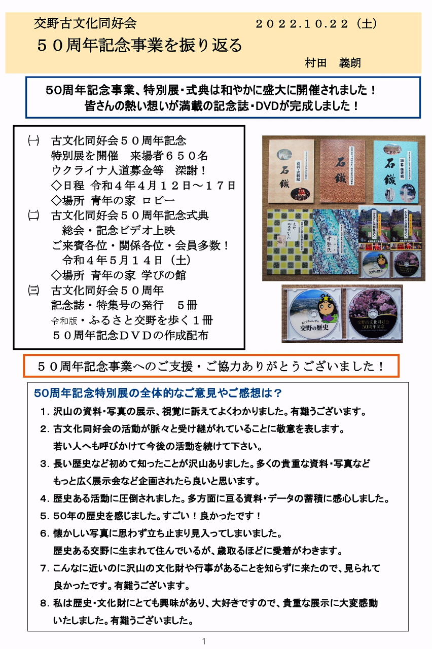 | 交野古文化同好会 レジメ 50周年記念事業を振り返る(PDF) |
