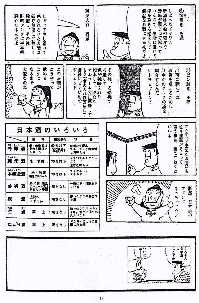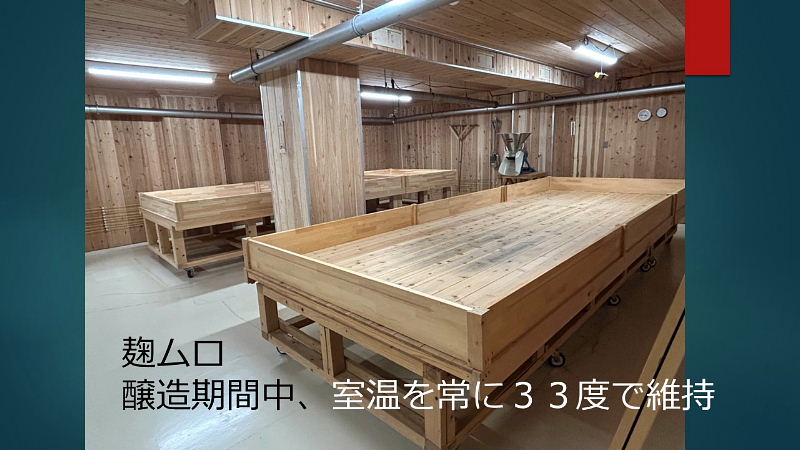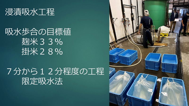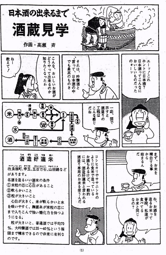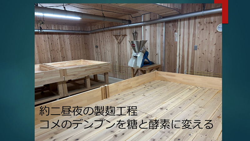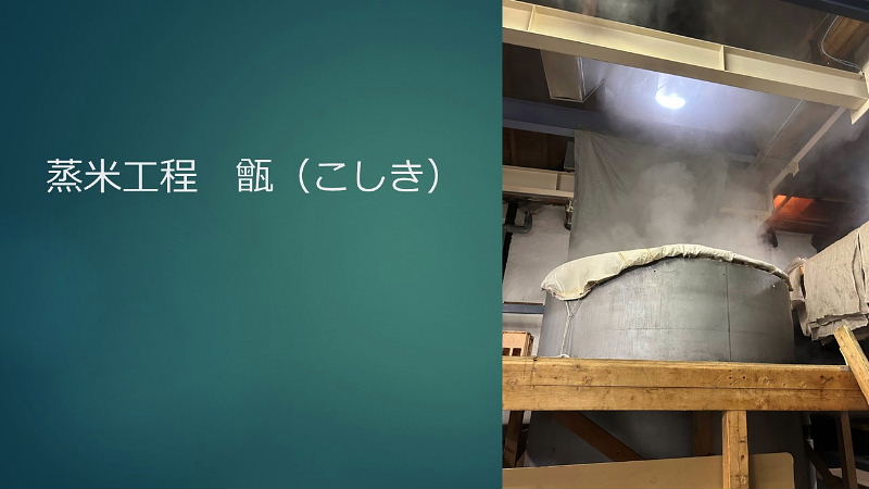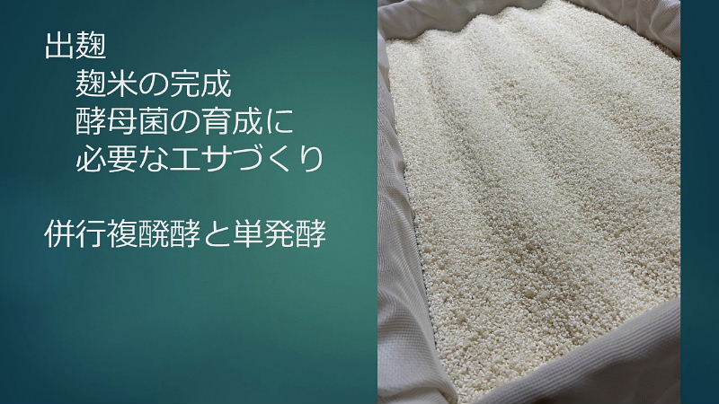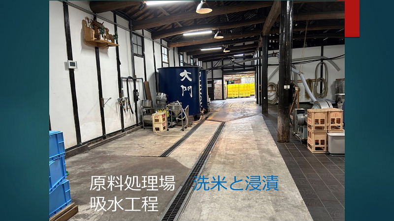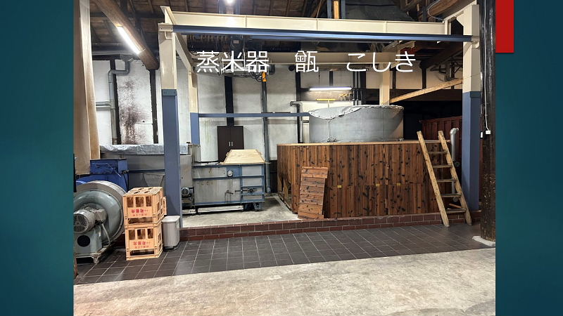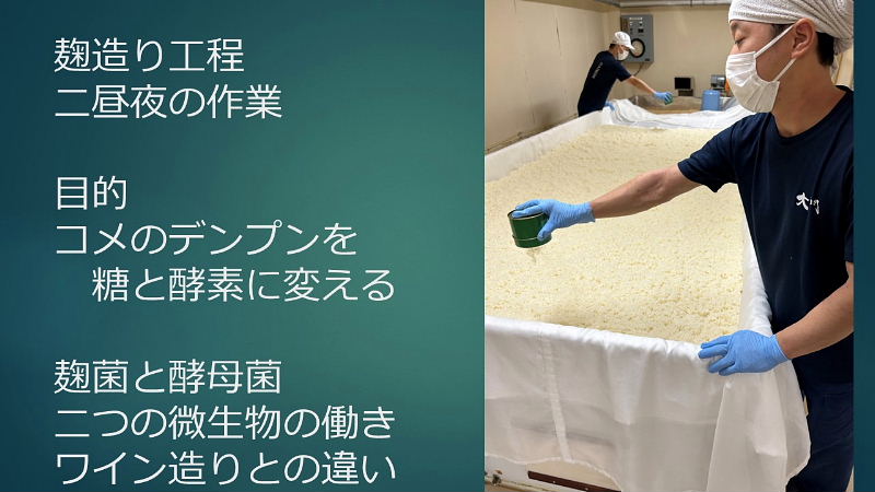 模擬酒蔵見学へのご案内 ・お米の話 酒造好適米と飯米の違い 精米の話 タンパク質と脂肪の除去 特定名称酒の定義 ・仕込み水の話 軟水と硬水 発酵の違い 酒の性質の違い 灘の男酒、伏見の女酒 ・洗米と浸漬 蒸米 麹米と掛米 限定吸水 吸水歩合 ・蒸米 甑(こしき) 米を軟らかくする ・麹米造り 麹ムロ 酒造りの基幹作業 デンプンを糖に変える 麹菌の話 酵母菌を育てるためのエサ造り 果実酒との違い 二昼夜の工程 「一麹、二モト、三造り」 ・酒母造り 酵母菌の培養過程 速醸モト 15日造り 水、麹米、純粋酵母、蒸米 ・モロミの仕込 三段仕込み 仕込み作業とは水、麹米、蒸米をタンクに投入する工程 仕込配合 味わいのコントロールは? 五味のバランス「甘、酸、辛、苦、渋」 ・モロミ発酵期間 普通酒と吟醸酒の違い 吟醸酒の定義―低温長期発酵の酒 ・上槽(じょうそう) モロミを固形分と液体に分離 酒粕と無濾過生原酒 ・ろ過 火入 割水 瓶詰 出荷 熟成 |