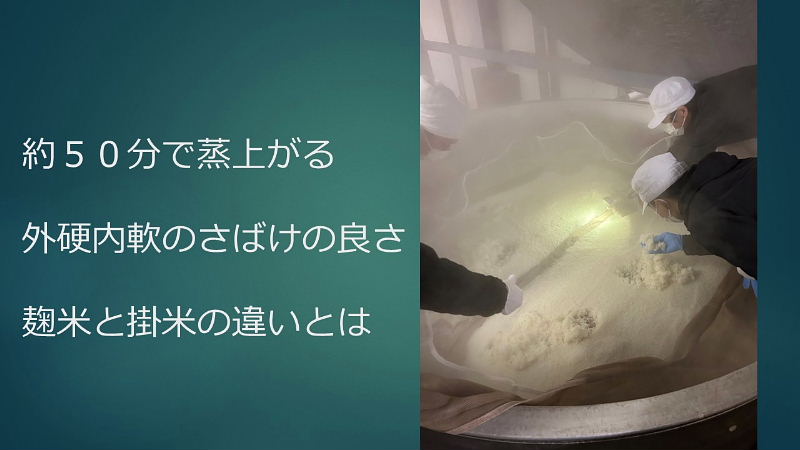 | 2025.7.19(土)午前10時、7月定例勉強会に42名が参加されました。当日は早朝より炎天下の中、気温もどんどん上がり気味で参加者の人数が心配されましたが、講師の大門酒造さんのお話を是非ともお聞きしたいと沢山の方が参加されました。 盛岡企画部長の司会で始まり、巽会長の挨拶のあと、講演会は、講師の大門康剛氏より「日本酒の昨日、今日、あした =酒造りの世界への誘い=」の演題で 約2時間、パワーポイントを映写しながら手際よく熱く語って頂きました。 前半の第1部では、初めに、日本酒の起源は縄文弥生時代から作られはじめ、稲作と共に普及、神のために作られた神聖なものから、時代の変遷を経て、杜氏、蔵人等が麹菌を用い長年の経験に基づき築き上げてきた酒造り技術で、各地の気候風土に応じ発展してきたことが、「ユネスコ無形文化遺産」の登録へと繋がったことが紹介された。 ※「伝統的酒造り」は2024年12月5日にユネスコ無形文化遺産に登録されました。これは、麹菌を用いた日本酒、焼酎、泡盛、みりんなどの製造技術を指し、杜氏や蔵人たちの長年の経験に基づいた技術です。この技術は500年以上前に原型が確立されたと言われています。 詳細:登録日:2024年12月5日 登録主体:ユネスコ無形文化遺産 対象:麹菌を用いた日本酒、焼酎、泡盛、みりんなどの製造技術 特徴:杜氏や蔵人たちが長年の経験に基づいて培ってきた技術で、 日本各地の気候風土に応じて発展 意義:日本の伝統的な食文化の一つとして、また、儀式や祭礼行事など、 日本の社会習慣や文化行事の中で重要な役割を果たしている この後は、大門酒造様のことをはじめ、北河内、大坂の酒造りの歴史と変遷、続いて江戸時代に形成された杜氏蔵人制度のことを詳しく説明され、新しい酒造りの時代が到来し、「文化遺産登録・交野乾杯条例制定」など、将来へ向けての明るい展望が語られました。 ※交野の乾杯条例制定については、「交野広報」の裏表紙に令和7年4月号より 1年間シリーズで詳しく紹介されています。ご参照ください。 後半の第2部は、「模擬酒蔵見学へのご案内」で、大門酒造様の酒造りの内容を「分かり易いようにと、日本酒の出来るまでー酒蔵見学ー漫画」もご用意いただき、併せて沢山の分かり易い写真を映写しながら工程毎に丹念に、詳細に渡りご紹介・ご説明いただきました。 参加された皆様から 「普段聞くことが出来ない「お酒のお話」が聞けて、大変感銘を受けました。一部専門的なお話もありましたが、大変分かり易く説明され、勉強になりました。」「今年の2月に、大門酒造様の酒蔵見学と昼食会に参加しましたので、詳しいお話を伺いたく参加しました。大変興味深くお聞きしました。有難うございました。」「毎日の生活に切り離すことが出来ないお酒です。これからも日本酒をよりじっくりと味わいながら美味しく頂きたいと思います。」と感想を頂戴し大好評でした。 <講演概要> 「日本酒の昨日、今日、あした」 =酒造りの世界への誘い= 第一部 初めに 日本酒の起源、神聖な醸造、神話によるお酒、伝統的酒造り 1.大門酒造について 大坂の酒造りの歴史 上方摂河泉 2.伝統杜氏の技の歴史 杜氏蔵人制度 3.新しい酒造りの時代の到来 4.国際的な視点からみたSAKE 5.将来への展望 ユネスコ無形文化遺産登録 交野の乾杯条例 第二部 模擬酒蔵見学へのご案内 ・お米の話 酒造好適米と飯米の違い 精米 ・仕込み、洗米、浸漬、蒸米、甑、 ・麹米造り、麹ムロ、麹菌、 ・酒母造り、酵母菌の培養過程 ・モロミの仕込み、三段仕込み、五味のバランス ・モロミ発行期間、普通酒と吟醸酒の違い ・上槽(じょうそう)、モロミを固形分と液体に分離 ・濾過、火入、割水、瓶詰、出荷、熟成 ※今回、講師の大門康剛先生のご厚意により当日配布された「レジメ」と 「パワーポイント画面」などを頂戴しましたこと、記して感謝申し上げます。 |