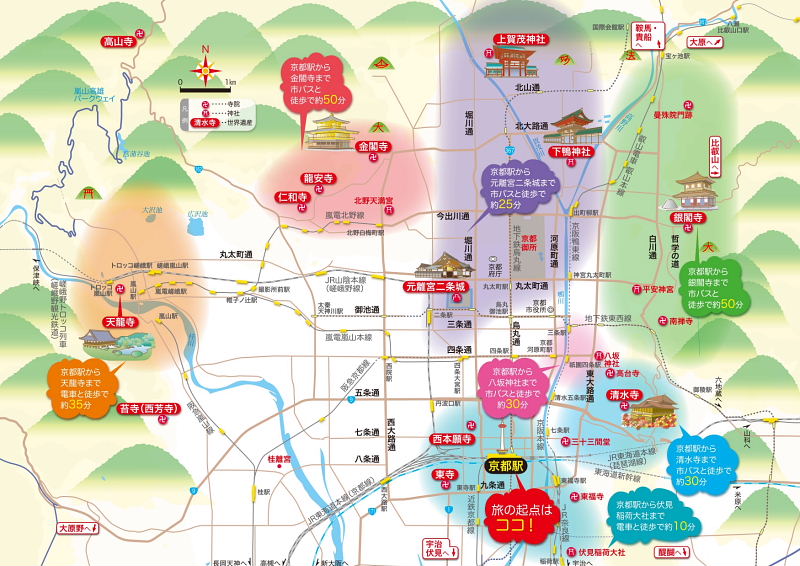 京都観光イラスト地図と観光マップです! |