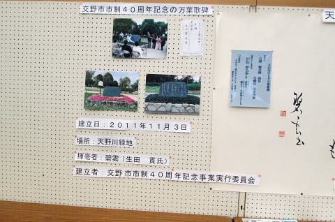 | 展示概要 1. 交野古文化同好会の展示テーマ 「交野の重点遺跡・森遺跡と森古墳群・交野車塚古墳群」と 古文化同好会50年の記録」 @ 石鏃と共に50年の記録 写真集展示 A 交野物部氏と饒速日命 資料・写真展示 B交野の自然と暮らし・フェノロジーカレンダーの展示 C年中行事と交野の秋祭りの写真展示 D交野郷土史かるた 資料展示 E交野の歴史DVDの上映 2.交野古文化同好会の記念誌の紹介と50周年記念誌 調査研究 3.機関紙「石鏃177・178号」のPR/配布 4.子供向けの「石仏の道ジオラマ作り」 |