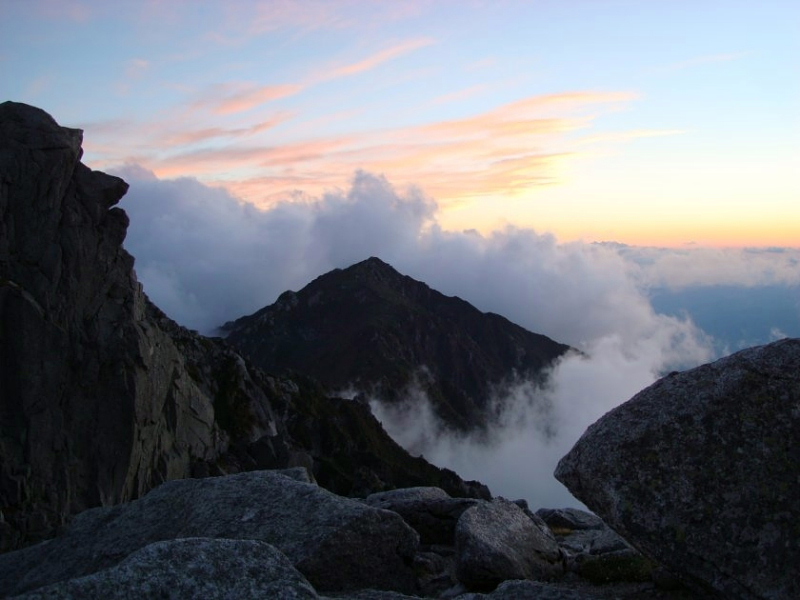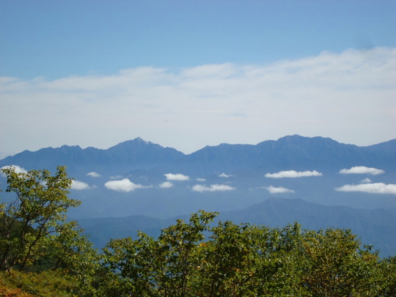 ![]() 左から間ノ岳、農鳥岳、富士山、塩見岳です |