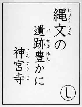 今月から、かるた札を地域別に紹介しながら、交野の名所・歴史を解説します。 第1回目は、神宮寺地区です。 |