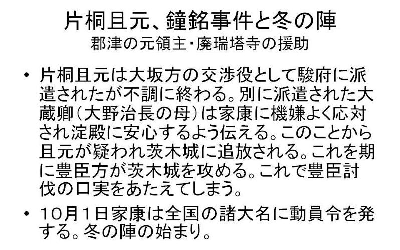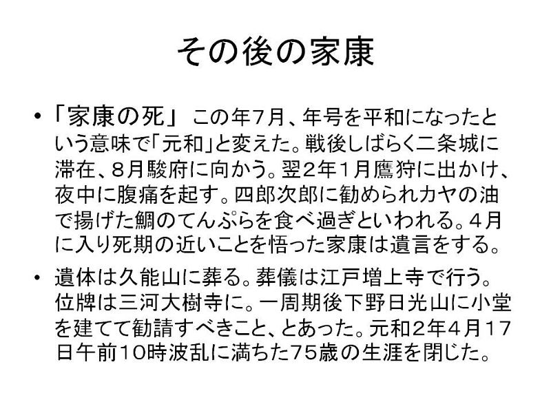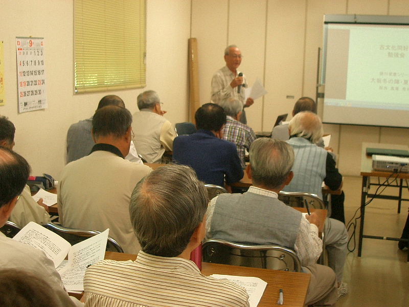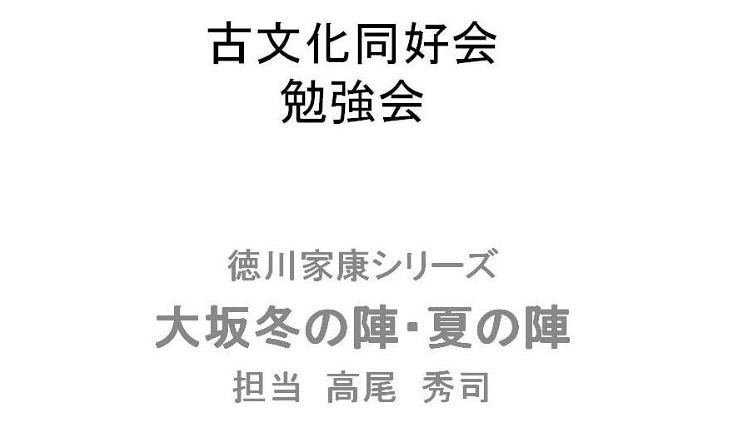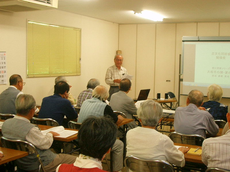 | 古文化同好会 勉強会 徳川家康シリーズ 第二弾 大坂冬の陣・夏の陣 平成23年9月24日 午前10時〜 12時 於 青年の家・学びの館 講師 : 高尾 秀司氏 |