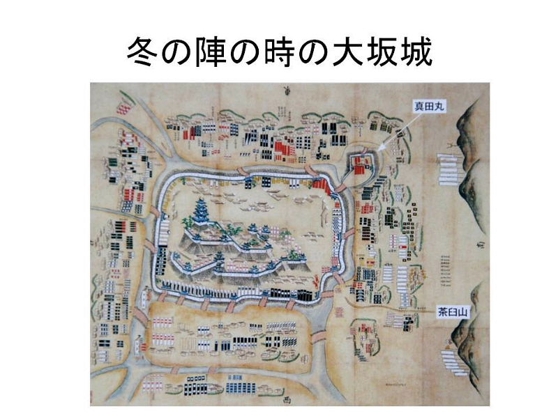 | 大坂冬の陣への序曲 慶長3年(1598)、太閤・豊臣秀吉、没。 慶長5年(1600)、関ヶ原の戦いに勝利した徳川家康は、慶長8年(1603)に征夷大将軍の宣下を受け、天下の実権をほぼ手中におさめた。他方、秀吉の遺児、豊臣秀頼は、関ヶ原の戦いの後、摂河泉(現在の大阪府の全域と兵庫県の一部)65万7千石の一大名に転落した。 しかし、天下の名城・大坂城にあって莫大な金銀を貯える秀頼は、家康にとって、依然、あなどりがたい存在であった。そこで、家康は、豊臣家の財力を失わせるため、故太閤秀吉の菩提をとむらうためなどと称し、秀頼に対して、さかんに寺社の造営・修復を勧めた。その中の一つが京都東山・方広寺大仏殿の再建工事である。 当時、秀頼が造営・修復した寺社など, 方広寺大仏殿、誉田八幡宮、四天王寺、東寺金堂、石清水八幡宮、生国魂神社、勝尾寺、中山寺、叡福寺太子堂、観心寺金堂、常光寺庫裏、宇治橋、鞍馬寺など。 方広寺大仏殿は、慶長17年(1612)に完成。同19年には大仏の鐘も完成したが、家康は、このとき鋳造された鐘銘の中に「国家安康、君臣豊楽」とあるのに、いいがかりをつけ、豊臣氏を挑発した。すなわち、「家康」の名を「国安」で切って家康を呪っている、 「君臣豊楽」とは、豊臣を主君として楽しむの意味だ、というわけである。 この一件の弁明のため、片桐且元が家康のもとに向かったが、この且元が豊臣氏から裏切り者の汚名をかぶせられ大坂城から退けられるに至って、ついに両者の戦いは避けられない情勢となった。 かくして、勃発したのが、大坂冬の陣である。 大坂冬の陣の戦闘経過 冬の陣は、主として、篭城戦で戦われた。豊臣方の兵力は約10万、徳川方の兵力は約20万(一説には約30万)といわれる。 慶長19年(1614)10月23日、徳川家康、軍勢を率いて京に入る。 10月26日、藤堂高虎、家康の命を受け、河内国府に本陣をおく。 11月3日、高虎、枚方方面から南下した松平忠明らと呼応、平野口から住吉に進撃。 11月5日、豊臣方の薄田兼相、平野口に出撃。徳川方の来襲をきき、急ぎ大坂城に入る。 11月6日、高虎、浅野長晟、住吉に布陣。松平忠継、有馬豊氏、中島に布陣。加藤明成、神崎から北中島に進撃。 11月15日、家康、二条城を進発、奈良に至る。徳川秀忠(将軍、家康の嫡男)、伏見から枚方に到着。 11月17日、家康、住吉に布陣。秀忠、平野口に至る。 11月19日、秀忠、住吉の家康本陣に到着。軍議の後、攻城の準備を終える。 11月25日、家康、大坂城の堀の水をからすため、淀川に春日井堤を築くべく、伊奈忠政に工事の監督を命じる。 佐竹義宣、上杉景勝、豊臣方の鴫野、今福の砦を占領。 野田、福島も徳川方の手に落ちる。家康、このころから和議交渉を始める。 11月29日、徳川方の蜂須賀至鎮、石川忠総ら、阿波座、土佐座を攻略。 12月2日、家康、茶臼山に本陣を進める。以後、大坂城の攻防が続く。 12月16日〜19日、家康、約300門の大砲で大坂城を砲撃させる。 12月22日、和議成立。 |