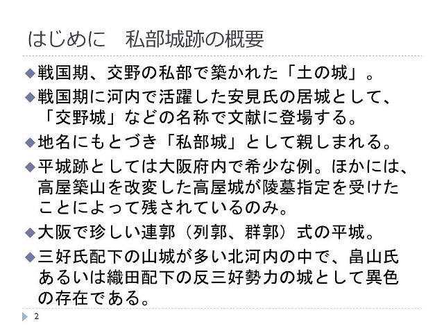 | クリック → 私部城(交野城)のレジメ (PDF) | |||