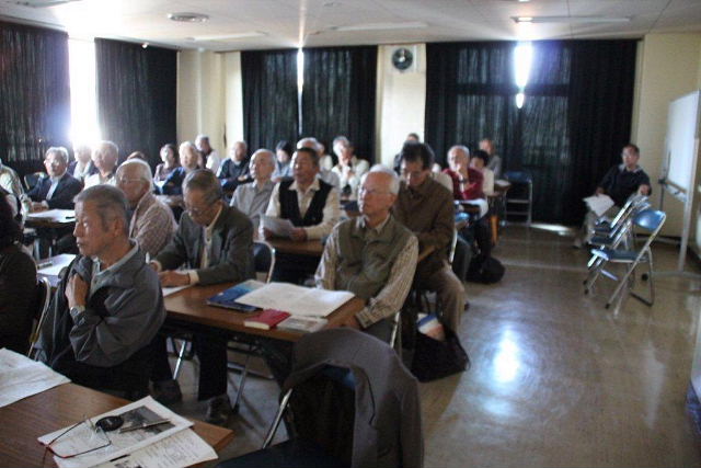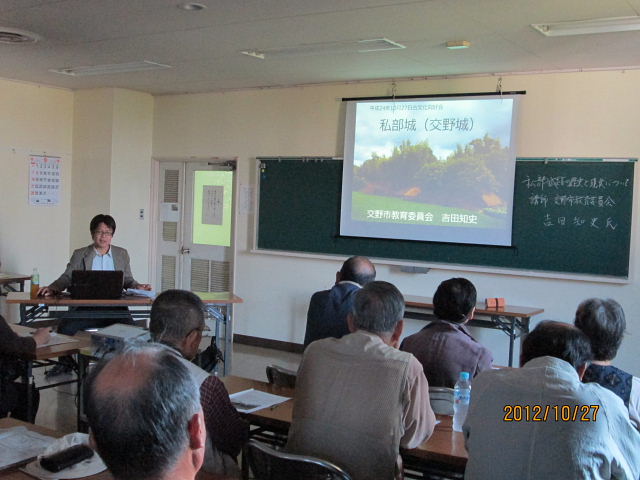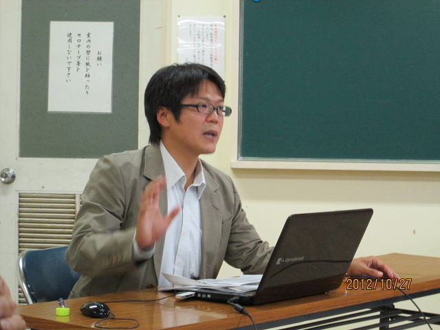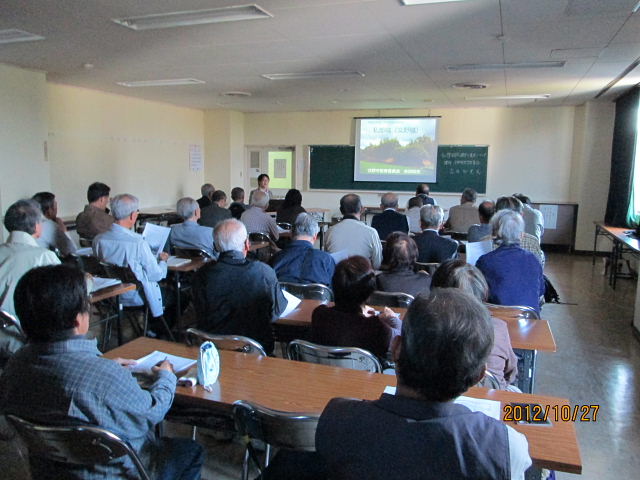 | 平成24年 10月定例勉強会 講師: 吉田 知史氏 (交野市教育委員会) 青年の家 201号 午前10時〜12時 42名の参加 |