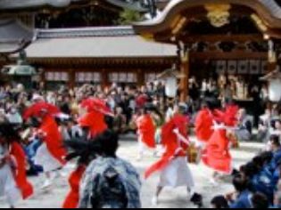 (1)祭 A三大奇祭 ・ 桜や椿などで飾られた花傘を中心に、赤毛・黒毛の鬼たちをはじめ約20名の行列が、お囃子に合わせて踊り歩きます。疫病を鎮め、健康を願う春のさきがけの祭として知られ、この花傘の下に入ると一年間健康に過ごせると云われています。 ■日程 四月第二日曜日 赤毛・黒毛の鬼たちが、笛や太鼓のお囃子(はやし)に合わせて、長い髪を振り乱しながら踊ります。「やすらい花や」の掛け声とともに、祭りの列が町を練り歩き人々の健康を祈る伝統のお祭です。 桜の花が散る頃、疫神は花の精にあおられていたずらをして回ると云われます。疫病の源はここにあるのです。祭りの中心はたくさんの生花で飾られた大きな赤い花傘(はながさ)です。やすらい踊りで花傘に惹き寄せられた疫神は疫社へと鎮められ一年の無病息災が祈られるのです。 花傘(はながさ)の下に入るとその年は病気をせずに過ごせると言われています。 その由来は、古来よりこの辺りの地域に悪疫が流行すると風流の装いを凝らして疫社に詣で、流行病が鎮まり穏やかになることを祈願する習わしにあります。 「太(うず)秦(まさ)の牛祭」「鞍馬(くらま)の火祭」とともに京の三奇祭(さんきさい)の一つとされ毎年多くの参拝者で賑わいます。 今宮神社のやすらい祭は、こちらを参照下さい。 |