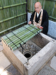 ![]() 「小野篁冥土通いの井戸」、井戸の傍に高野槙が生えている。 小野篁はその枝を伝って井戸内へ入り、冥界の閻魔庁に通ったという。 この井戸は入口で、出口は嵯峨野大覚寺門前六道町にあったという福生寺(現在の嵯峨薬師寺)、 こちらは「生(しょう)の六道」と呼ばれた。 |