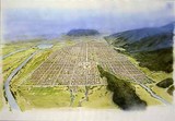 ![]() 延暦3年(784)に、桓武天皇が長岡京に都を移しました。これが機会となって、それまでの『京(みやこ)』が廃止され、『京はひとつ』という考えが定着していきます。それまで、『平城京』や『藤原京』、『難波京』などと、『京』は移り変わりました。したがって、この考えによって、都が794年に京都に移ったときも、あくまで『京(みやこ)』はひとつとなったのです。 『京都』という言葉は、『京(みやこ)』と『都(みやこ)』が重なっています。そして、中心的な都市(現在の首都)という意味合いを持ったのです。これが11世紀の後半に、地名として固有名詞化したのです。この都は、唐の長安、洛陽などをモデルとして街づくりが行われました。朱雀大路を中央に置き、左京と右京に分かれて発展していきます。京都は、『山河襟帯(さんがきんたい)して、自然に城を作(な)す』といわれ、美しい都として都市の体裁を整えていきます。 |