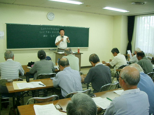 | 平成24年 9月定例勉強会 神社仏閣を中心に <京都のこと、知っているようで知らないこと、いろいろと> 講師: 吉岡 一秋氏 (古文化同好会) 青年の家 201号 午前10時〜12時 44名の参加 |
