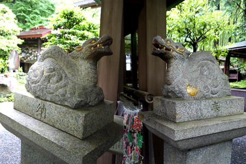 狛犬ならぬ他の生き物の神社を紹介。![]() ・「狛猪」 → 護王神社 ・「狛兎」→ 岡崎神社 ・「狛龍」→伏見神賓(ふしみかんだから)神社 ・「狛鳩」 → 三宅八幡神社 ・「狛鼠」 → 大豊神社 「狛龍」→伏見神賓(ふしみかんだから)神社 伏見稲荷大社の奥社を過ぎて鳥居の参道をすこし外れたところに神宝神社(かんだからじんじゃ)があります。 平安時代の創建で、元は稲荷山の山上にあったそうです。 狛犬の代わりに立派な狛龍が社殿両脇に置かれています。 右側が天竜、左側が地龍。 伏見神賓(ふしみかんだから)神社のこと、 詳しくは、こちらを参照下さい。 |