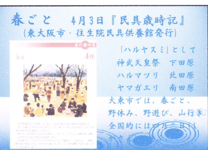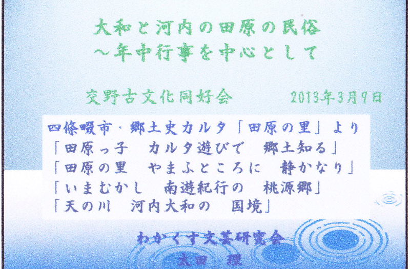 | 古文化同好会3月度勉強会 平成25年3月9日 「大和と河内の田原の民俗・年中行事を中心として」 わかくす文芸研究会 太田 理氏 |
