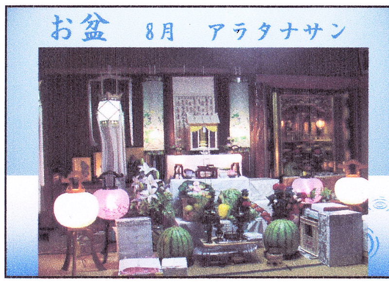 | 「今日は名月やから、お月さんに芋供えてや。」 「ススキとハギは、とっておいてや。」と、朝の対話があり、夕方までに、元気のよいススキと色のよいハギを取ってきて、一升瓶にさいて縁側に供える。おばあさんは、こ芋といんげん豆を、年によっては、きつまいもを掘ってきて供えてくれる。ちょうしにお酒を少し入れ、さかずきを添えて、ショウギ(床机)の上に飾り、お月さんがよく見える縁側に供える。 ![]() お月さんが上ってきて月の光が当たってくると手を合わして拝む。これで、子どもの「祭子役割」が完了して、夕食になる。 9月中旬の名月の頃には、こ芋はまだ小さく初物で、お月さんに供えるために一株か二株掘って、家族もお相伴できるので、供えたこ芋を見るとヨダレを落としそうになリ一つつまみたくなったことを覚えている。 さつまいもの40日でも作っていたら掘れる年もあつたが、音は今に比べ、作物のできるが二ヶ月ぐらい遅く、11月に大方のものが実った。 雨戸を開けるとショウジ(障子)がなかったので、広いカドからよく見えるし、すぐに手が届くので家族の夕食が始まるまで、子どもが番をしていた。取りに来ることを予想し、また期待して。 「初物はやっばりうまいな。お月さんも食べはったやろか。」……表で子どもの声がする。ふとお供えに目をやると、お皿はカラッポ。「あっ、やられた。お月さんにこ芋のお変わりや。」と、たのんでおいて、ジンベを着て出ていく。 お月見泥棒は、絶対に顔を見せない。ジンベを頭からかぶったりする。1メートルほの細い竹を持つてきて、手を伸ばしてこ芋を刺して取る。小さい子は縁に上って手でつまんでとる。家の人たちが目を離した一瞬を狙ってたばって(賜って)しまうスリルが何とも言えない。ワァーと(勝どき)声が聞こえた時は、全部取られた後である。2~3人で連れ立って近所を回る。番をしている人の姿があれば、消えるまで庭の茂みに息を殺して待つ。その中にチャンスがある。手を伸ばして小芋をつかんだ瞬間に、冷たい手で足を捕まれたことがある。おじさんが縁の下にゴザを敷いて寝ておられたとのこと。子どもたちの楽しい行事におじさんが一味加えてくれた格好となり 、翌年からは縁の下にも気を配らなければならなくなり、楽しさが増した一時期もあつた。でも、泥棒をすることは悪いことであるから学校では一切話をしなかった。先生も、巡査も知っておられたが、名月の芋に限って目をつぶってくれていたようです。その後、柿に手を伸ばした高学年生があったとかで、学校で注意を受けたこともあつた。 仲秋の名月を拝み、名月の映える天の川で手を清め、悪病を洗い流す、という心仰心に付随した『芋賜り(いもたばり)』が、いもドロボーに変化した素朴な遊びであった、と思われる。 小字によって多少の違いがあったようです。自分の小字(照湧、野田、片田、滝寺)の外へは行かなかった。 おしまい、おしまい・・・! |
