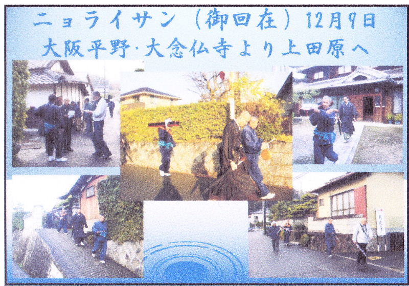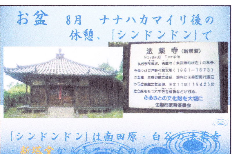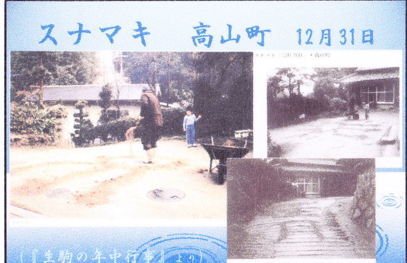 | 田原(たわら) 大阪府四條畷市上田原・下田原(河内)と奈良県生駒市南田原・北田原(大和)府県境は天野川。土地の人々はこの4つの田原を「よたわら(四たわら)」と言い共通の文化圏を有し、互いに繋がり合う部分も多い。 田原城跡 田原城主の菩提寺千光寺跡から日本最古のキリシタン墓碑(天正九年辛巳(1581)・礼幡)、完形品の中国渡来の青磁袴腰香炉等出土。 「南遊紀行」貝原益軒著 元禄2年(1689年) 岩舟より入りて、おくの谷中七八町東に行けば、谷の中頗(すこぶ)る広し。其(その)中に天川(あまのがわ)流る。其里を田原と云(いう)。川の東を東田原と云、大和の国也。川の西を西田原と云、河内の国也。一潤(たに)の中にて両国にわかれ、川を境とし名を同くす。比(この)谷水南より北にながれ、又西に転じて、岩舟に出、ひきき所に流れ、天川となる。凡(およそ)田原と云所、此外に多し。宇治の南にも、奈良の東にもあり、皆山潤(さんかん)の幽谷の中なる里なり。比田原も、其入日は岩舟のせばき山澗を過て、其おくは頗ひろき谷也。恰(あたかも)陶淵明が桃花源記にかけるがごとし。 桃源郷・理想郷・俗世間を離れた別天地のようだと述べている。 注:生駒市全ての町の年中行事については、植田啓司氏(前わかくす文芸研究会会長・故人)らの調査報告、『生駒の年中行事』生駒市文化財調査報告書<第6集>(1987.3 生駒市教育委員会)があり、その内の北田原町・南田原町を、大東市の行事については『大東市文化財ガイドブック』の「Ⅱ、大東の伝承文化 五穀豊饒を祈つた日々」を参考にしています。四條畷市側の田原については、後ろの参考資料共々、下田原在住の丸石完氏に主にお話をお聞きしています。 以下、(下)、(大)、(北)、(南)はそれぞれ下田原、大東市、北興原、南田原を表す。 1月 雑煮 1日 どの地域でも。興味深いことに、雑煮を炊くのはどの地域も男(戸主)の仕事だということ。 ハツミズ (北)(南)(下)若水汲み(大): 1日 神仏供え 雑煮のさし水。家族の中で戸主が一番早く起きて初水を汲む。汲む時は橘をイドに投げ入れる。初水は雑煮をたく水に使い、家族の者は手水に使う(南)。(下)では照涌(てるわき)大井戸の水を使つた。 雑煮を豆殻(豆幹、豆木)で炊く(大)。豆本で炊く(南)。マメに働けるよう、暮らせるよう(暮らしの無事を祈る)。 雑煮の中味:自家製の赤味噌で、ゴボウ、ニンジン、ダイコン、サトイモ、コドウフなどを入れる(下)。大根、人参、豆腐、 ドロイモ、昆布をいれ味噌で味をととのえ、煮立ったところヘコドウフというモチ米と米の粉で練ったものと焼いた餅を入れて…。(南)。 「コドウフ」が共通 コドウフ=粉豆腐:大豆をすりつぶしてもち米を少し加える。今も作つている。地域の人が小学校に出前授業、食育体験学習として地域の伝統食を伝えている(下)。 ![]() 初山 (下)(南)(大)ヤマイキ(北)(大) 1月2日~4曰 山の初仕事。下田原では今も何軒かの家で行っていると聞く。 鍬初め (下)(大)ハツシゴト(南) 野まわり(大): 1月2日か3日 田畑の初仕事。 絢い初め (ないぞめ)(大) 1月2日 野まわりの後、牛の共同仲間で牛の道具縄を絢う。終わると宴(大)だけの記述ですが、他の地域ではどうでしょうか。 カミトンド、子どものとんど(下)、神とんど(大): 寒の入りの1月6日 6日夜から7日早朝を神の年越しと呼び、氏神の境内で小さなとんどを作った(大)。子供たちだけで行う。垣内の最年長の子供(小学校6年生か高等科2年)が指揮をとり役割を決める。青竹、わら、しめ縄をもらいに回り、人数に合つた大きさを決め、力を合わせてとんど作りをする。直径1メートル高さ5~ 6メートルのとんどを立ち上げるのが大変。立ち上がった時の満足感。「しんぼう、協力、助け合い」のすばらしい伝統行事だつた(下)。(参考資料「大とんどに寄せて」下田原・丸石完氏 参照) 七草粥: 1月7日 どの地域でも。春の七草(せり・なずな・ごぎょう・はこべら・ほとけのざ・すずな・すずしろ)を摘んで七草粥を炊いて祝う。これは万病に効くと云われている。(大) 唱え言葉 家によつては七草を料理する時、「七草ナズナ唐土(とうど)の鳥が、日本の国へ 渡らぬ先に…・トトンガトントン…・」と、歌いながら七草を料理していた(大)。同様唱え言葉(南)。 ◆「七草の囃」:七草の祝に、前日の夜または当日の朝、俎になずなまたは七草を載せ、吉方(えほう)に向かい台所の七つ道具で「唐土の鳥が日本の土地へ渡らぬ先になずなななくさ」などと唱え囃しながら叩いた事。(「広辞苑」) ホウジサシ(傍示さし) (下)(上田原): 1月11日 地区境の両側(上田原と下田原)から数名の代表が、傍示つぼ(過去にさした竹が残つているところ)に割竹をさして、土地の境界を確認する。今も行われているが、現在は決まった日の11日ではなく、日曜日に行うようになつた。「傍示さし」という漢字を当てているが、或いは違うかもしれない。※後述「傍示さし同行記」参照。 ![]() 生駒市鹿畑町ではボウジサシ(傍示さし)。 1月2日に仕事始めとして各家の主人