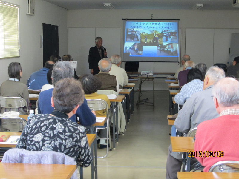 平成25年3月定例勉強会![]() 「大和と河内の田原の民俗・年中行事を中心として」 講師:太田 理氏 (わかくす文芸研究会) 青年の家・学びの館 午前10時~12時 30名の参加 |