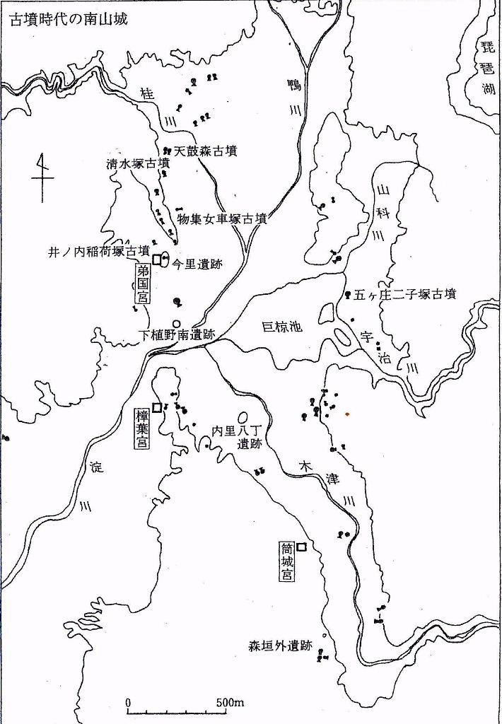 ![]() 古墳時代の南山城・・樟葉宮、筒城宮、弟国宮の3地域は 淀川・木津川・巨椋池・桂川と河川交通で繋がり、 その地域の豪族(五ケ庄、物集女、河内馬飼など)との結びつきがみられる。 |