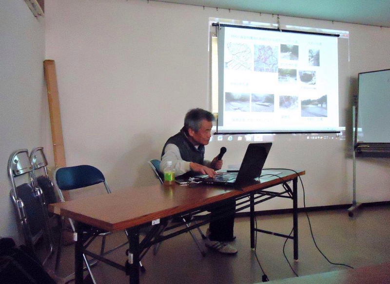 | 2013.10.26(土)午前10時、10月定例勉強会に34名(会員27名)が参加されました。 高尾秀司副部長の司会で始まり、大屋喜代治氏より、「明治初期の実測絵地図(堺県星田邨萬分之六図)で星田の山を歩く=ポケットGPSで現存する道をたどる=をテーマに、長年、星田の山を我が庭の様に愛され探訪し集積された膨大な映像写真やデータを基に、「星田の山の総集編」として詳細にわたり解説・説明いただきました。 昭和40年後半に星田に住まわれ、星田山から北山師岳を経て磐船神社までよく歩かれたそうです。また、古文化同好会企画の「国境を歩く」(昭和53年)に参加、交野市の市境を3日かけて歩かれた。 その後、仕事の関係で一時、山への足は遠のいたものの思いは熱く、退職を機に友人の堀江氏ともに再び山に入り「明治初期の古絵地図から見た星田の山の地名・名所・旧跡と古道ハイキングマップ&ガイド」小冊子を作成された。 その後、平成15年(2003)7月に交野歴史健康ウォークで、「なすび石の滝を訪ねて」をご案内頂きました。次いで、平成16年(2004)4月の総会後の講演会で「星田の山と古道」をテーマで、「星田の山」の時代と環境変遷や小松・北山師岳ルート、星田山ルート、日高山・西谷ルートなど「星田の古道ハイキング」の詳細なマップなどを解説・紹介していただきました。 同時に、「星田古道を歩く会」の活動として、星田の山の池や滝など豊かな自然や小松寺に関わる遺跡やロマン、西谷の沢歩きなど魅力たっぷりのルート、地名、名所、旧跡などを分かりやすく案内できる、案内板・表示標識などを40数ヵ所設置されました。 そして、4~5年前までは毎日星田の山を歩いておられたが、歩く人がほとんどない山中での緊急事態があると大変ということでドクターから勧められ、最近では平地散歩に切り替え、地元星田山手住民を中心に南星台、妙見東などの住民も加わった「奥山を歩く会」に毎週月曜日参加され活動されている。 なお、詳細は、大屋さんの下記のホームページを参照してください。 星田里山古道探索 http://www.eonet.ne.jp/~k-oya/index.htm ※今回の勉強会の報告に当たって、当日プロジェクターで映写された写真・データ関係資料を 大屋さんのお許しを得て、掲載させていただきました。 記して感謝申し上げます。 来年2月8日(土)、交野歴史健康ウォークで、大屋さんにご案内していただき星田の山を歩きます。 今回の詳細な説明をもとに今度は現地に足を伸ばして、明治初期の実測絵地図と現存するルートや歴史的な史跡・遺跡などを探訪したいと企画しています。 |
