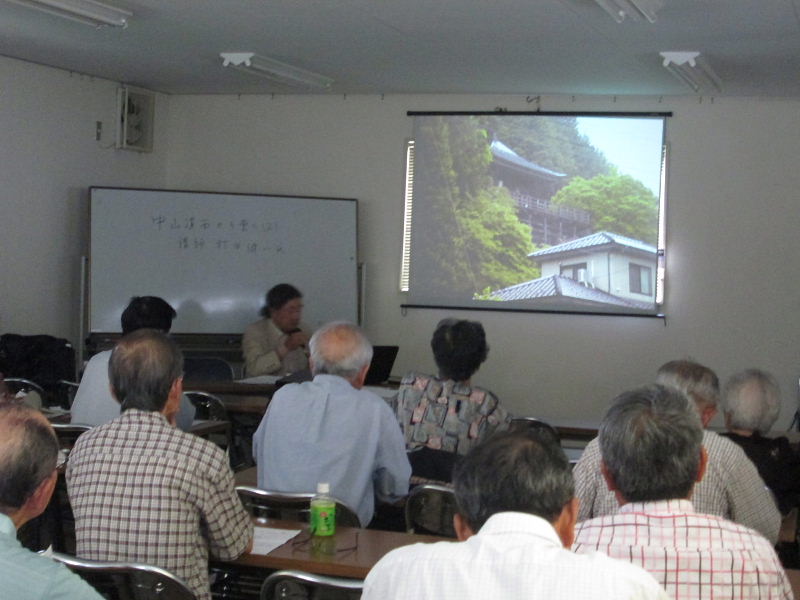 | 2014.6.28(土)午前10時、6月定例勉強会に37名(会員33名)が参加されました。 立花会長の挨拶、高尾企画事業部長の講演会の日程紹介に続いて、村田健一氏より、先月に引き続き、「中山道 西から東への後編・総集編」をテーマに、中山道を歩かれた日程、中山道のあらまし・略図の説明など、今回は中山道の最大の難所と言われる和田峠と碓氷峠を中心に、詳細な写真集を上映しながらわかりやすくご講演いただきました。 休憩を挟んで第2部では、「小田井宿」をスタートして、「坂本宿」までの26kmを歩かれた様子を45分間のビデオで詳しくご紹介いただきました。 険しく狭いアップダウンのルートを、ビデオカメラを片手に、案内しながら撮影された素晴らしい内容でした。 歩かれたルートの地図を確認しながら、もう一度ゆっくりと鑑賞したいと思いました。 |