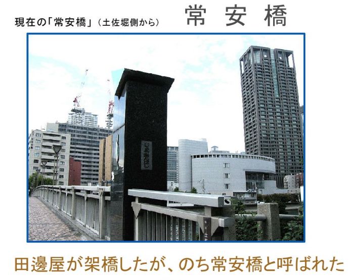 | 淀屋とは、江戸時代に大坂で繁栄を極めた豪商である。全国の米相場の基準となる淀屋の米市(北浜の米市)を設立し、大坂が「天下の台所」と呼ばれる商都へ発展する事に大きく寄与した。 米市以外にも様々な事業を手掛け莫大な財産を築くが、その財力が武家社会にも影響する事により、幕府より闕所(けっしょ=財産没収・所払い)処分にされた。 しかし、闕所処分に先立ち伯耆国久米郡倉吉に暖簾分けした店を開き、後の世代に元の大坂の地に再興した。幕末になり殆どの財産を自ら朝廷に献上して幕を閉じたと言われているが定かではない。 淀屋を創業した岡本家による前期淀屋、倉吉の牧田家は倉吉淀屋、闕所後に牧田家(淀屋清兵衛)により再興されたものを後期淀屋、と呼び分類している。 淀屋が開拓した中之島には、かつて常安町と常安裏町(現在の中之島4丁目~6丁目)があつた。 また現在も中之島に架かる淀屋橋や常安橋にその名が残る。 (毛利 信二さんに概略纏めていただきました) |