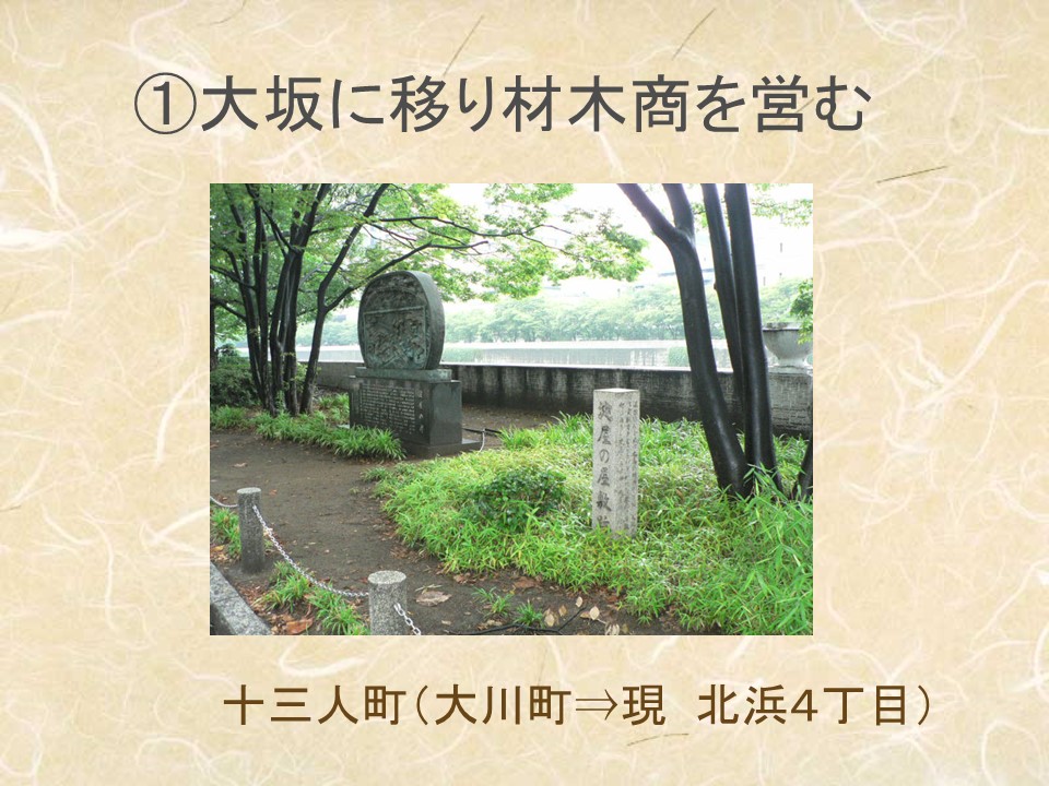 ①大坂に移り材木商を営む。 (5)家康・秀忠の徳川時代初期の大坂