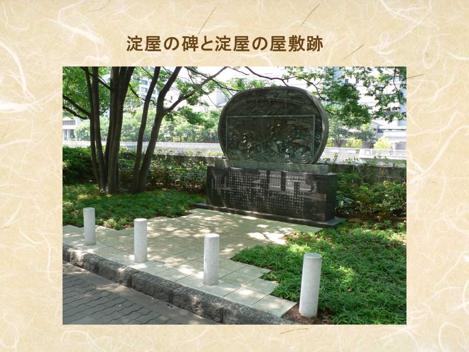 | 当日、講演会で使用されたパワーポイント 豪商「淀屋の歴史」から 毛利さんの了解を得て一部を掲載させていただきます。 |