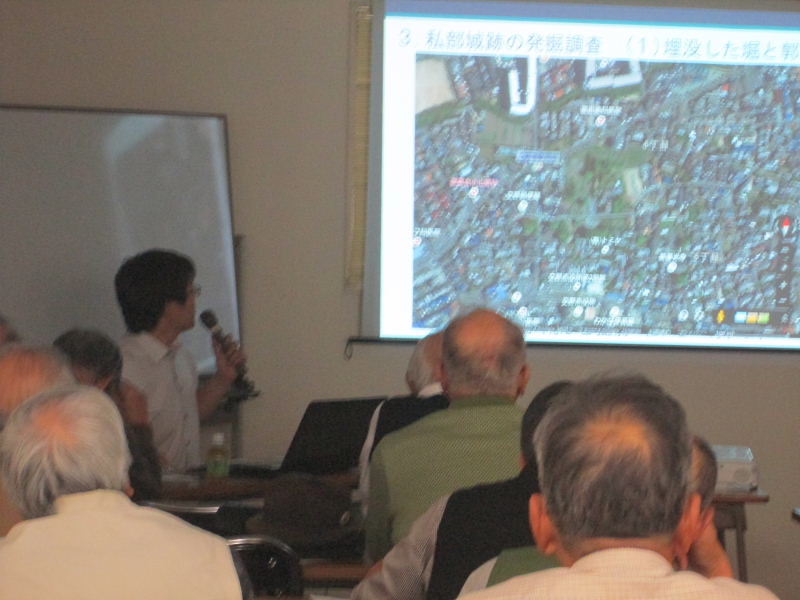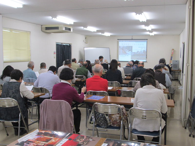 | 平成27年10月定例勉強会 発掘調査からみた私部城 講師:吉田 知史氏 (交野市教育委員会) 青年の家・学びの館 午前10時~12時 32名の参加 |