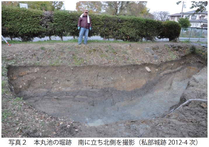 本丸池(2012-4次第4調査区) 私部城があったころの堀の形を確認した。