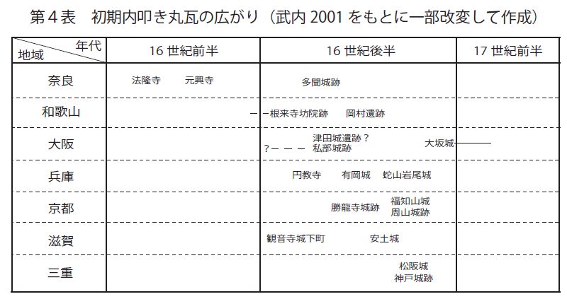 山川均 1996「城郭瓦の創製とその展開に関する覚書」『織豊城郭』第3号、織豊期城郭研究会