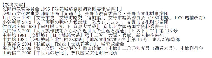 中井均 2011「私部城の歴史と構造」『シンポジウム「私部城」資料集』、交野市文化財事業団